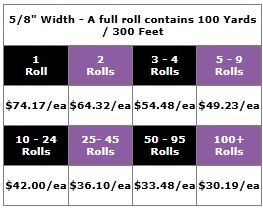 | 5/8" Width - A full roll contains 100 Yards / 300 Feet | |||